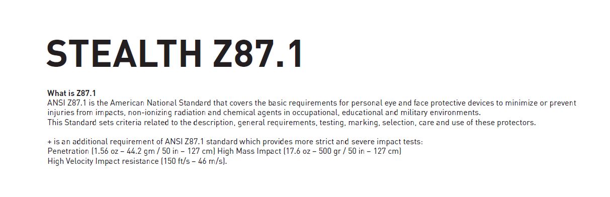 דגם זה עומד גם בתקן בטיחות אמריקאי ANSI Z87, מתאים לשימוש בסביבת עבודה בה נדרשים משקפי מגן.
