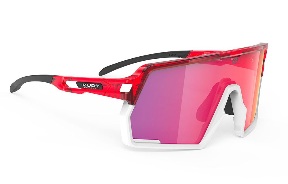 • דגם אסטרל של רודי פרוג'קט מק"ט ASTRAL S SP977569 צבע לבן מבריק עם עדשות מתכהות מסגול שקוף לכחול מראה