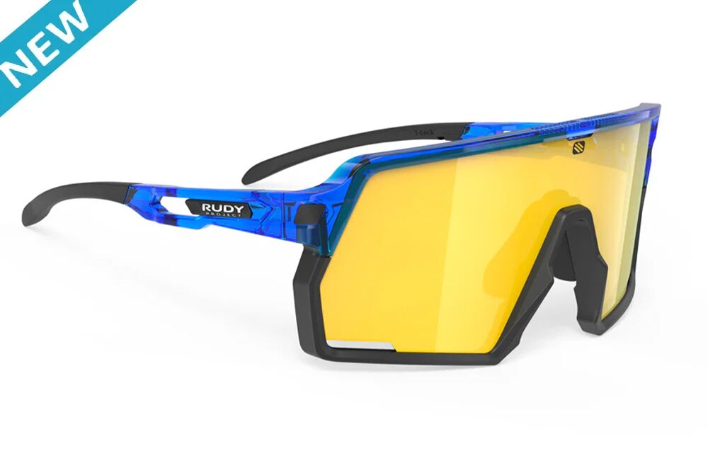 • משקפי השמש  Sydus של Rudy Project  מק"ט SQ010549-0000 מסגרת כחולה ועדשות פוליקרבונט עם ציפוי מראה בגוון צהוב.